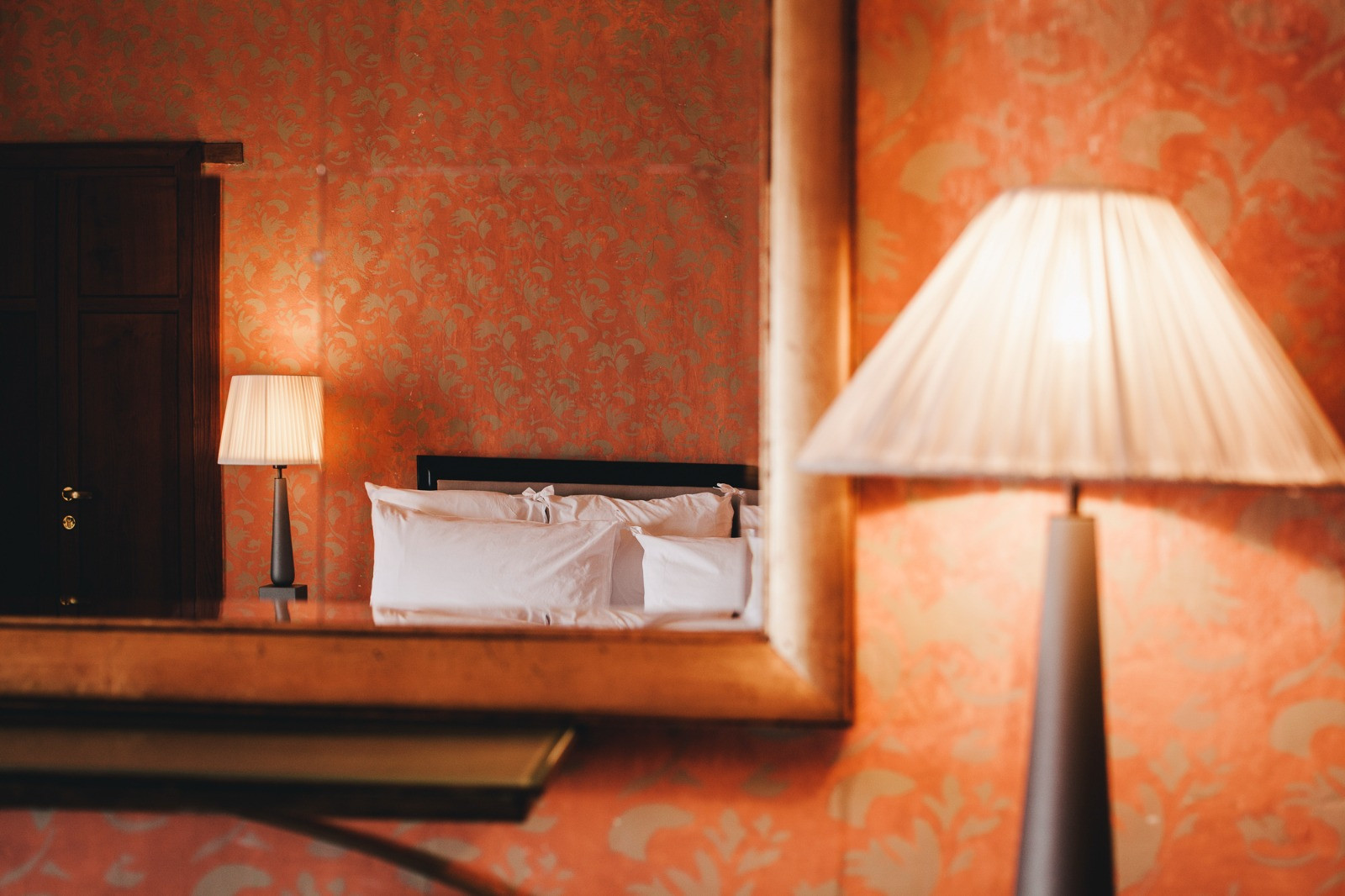 Esta habitación central en el último piso ofrece una amplia terraza con una vista inmejorable sobre la Costa Amalfitana y Capri. Las paredes de un rojo intenso y sobrio, enriquecidas por frescos pintados a mano, confieren a esta habitación una atmósfera especial y acogedora, que hace sentir como en casa propia.