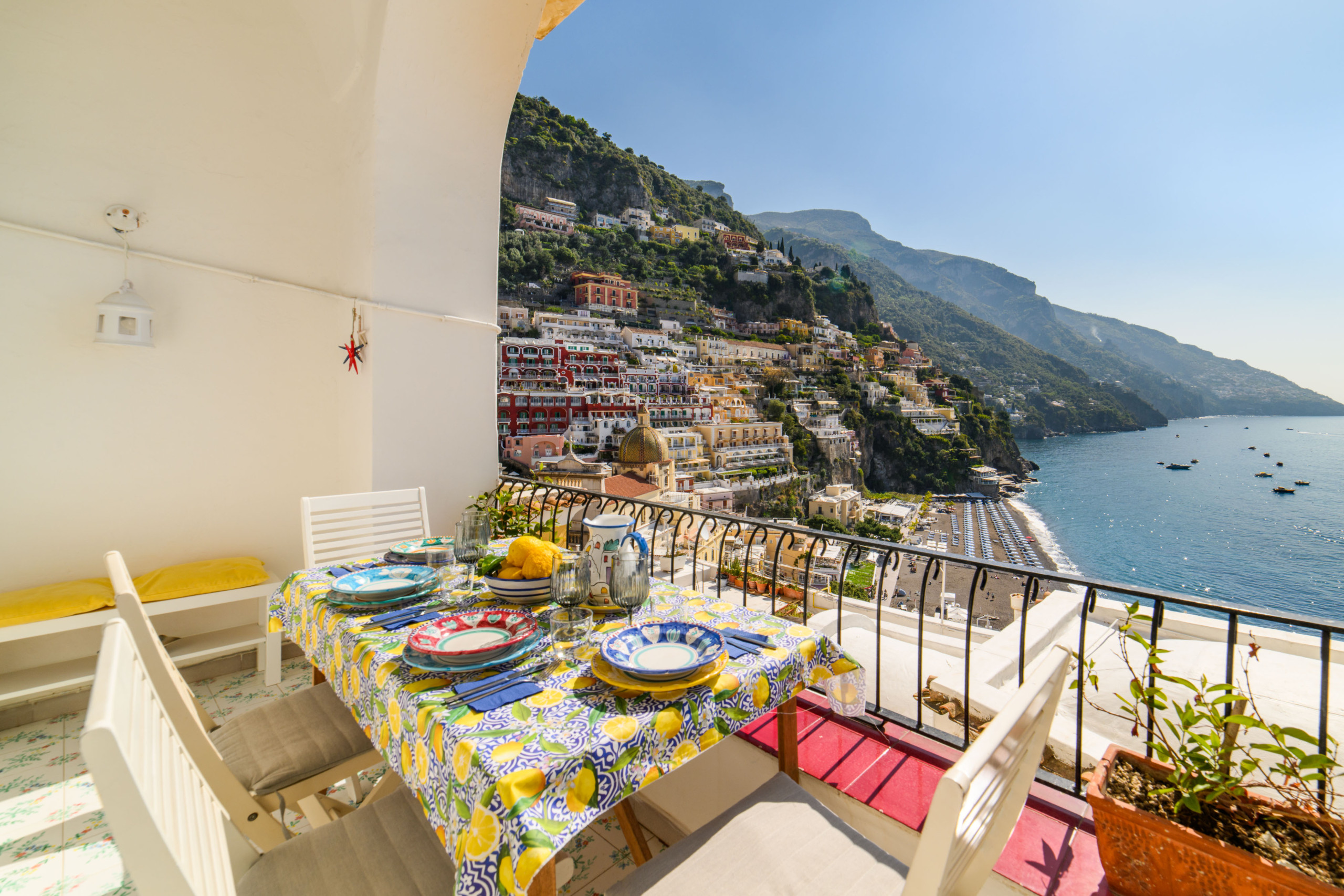 El verdadero corazón palpitante de la casa sigue siendo su magnífica terraza privada: veinte metros cuadrados de puro encanto suspendidos entre las cúpulas mayólicas de Positano y el infinito del mar. Un mirador privilegiado que, desde el primer café de la mañana, transforma cada instante de la estancia en una postal viviente.