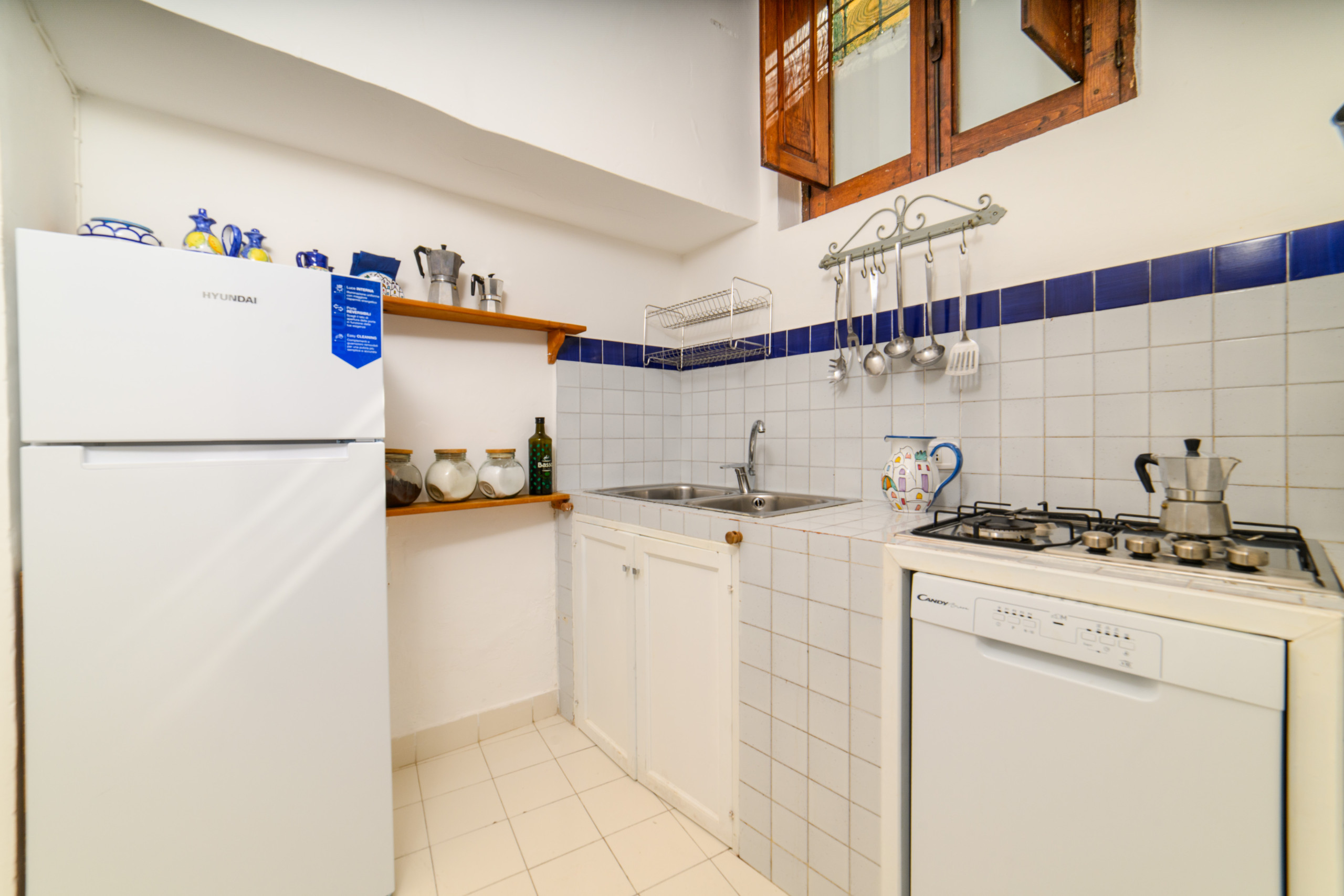 El parque tiene acceso directo desde el famoso paseo Pasitea, a pocos pasos del café Positano, de todos los bares, restaurantes y tiendas de compras de Positano. El apartamento está ubicado en la parte alta del parque, para acceder es necesario subir 100 escalones. Se distribuye en varios niveles, al entrar encontramos un amplio salón con sofá cama matrimonial, TV de pantalla plana y aparador. El salón está directamente conectado a la terraza exterior a través de una amplia puerta ventana. La cocina, de estilo napolitano, está finamente decorada con frescos que recuerdan a la naturaleza, y se compone de: nevera con congelador, fregadero con doble lavabo, lavadora y lavavajillas. Estante con taburetes altos, mesa redonda con 8 sillas de piedra volcánica.