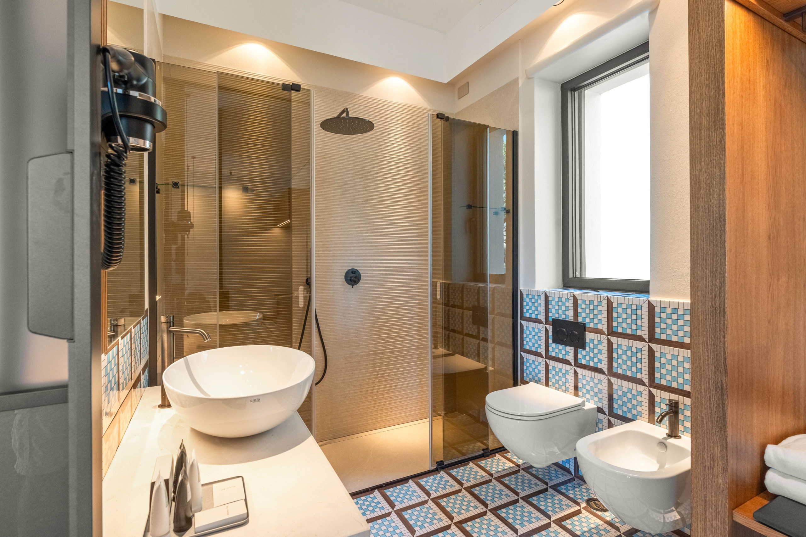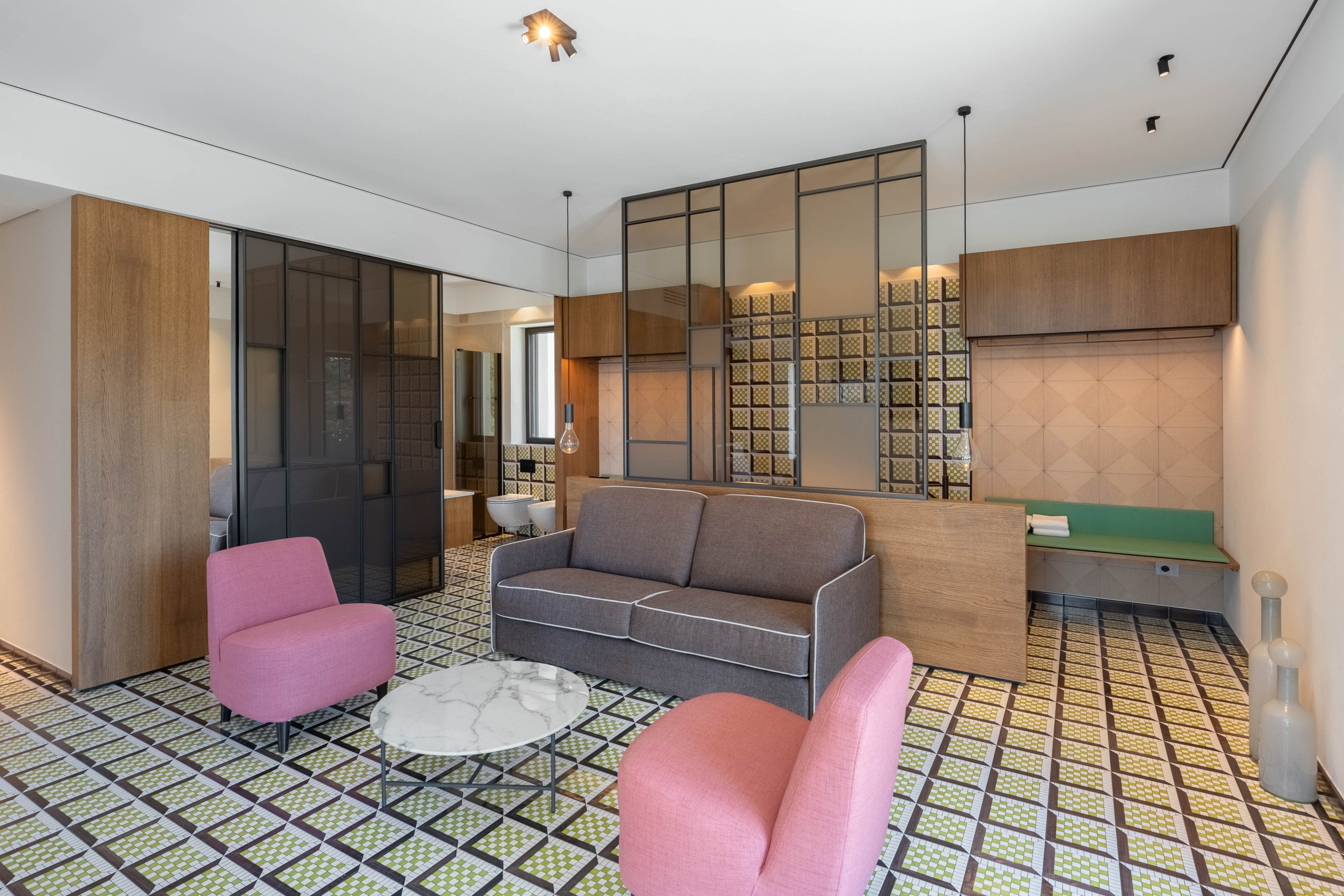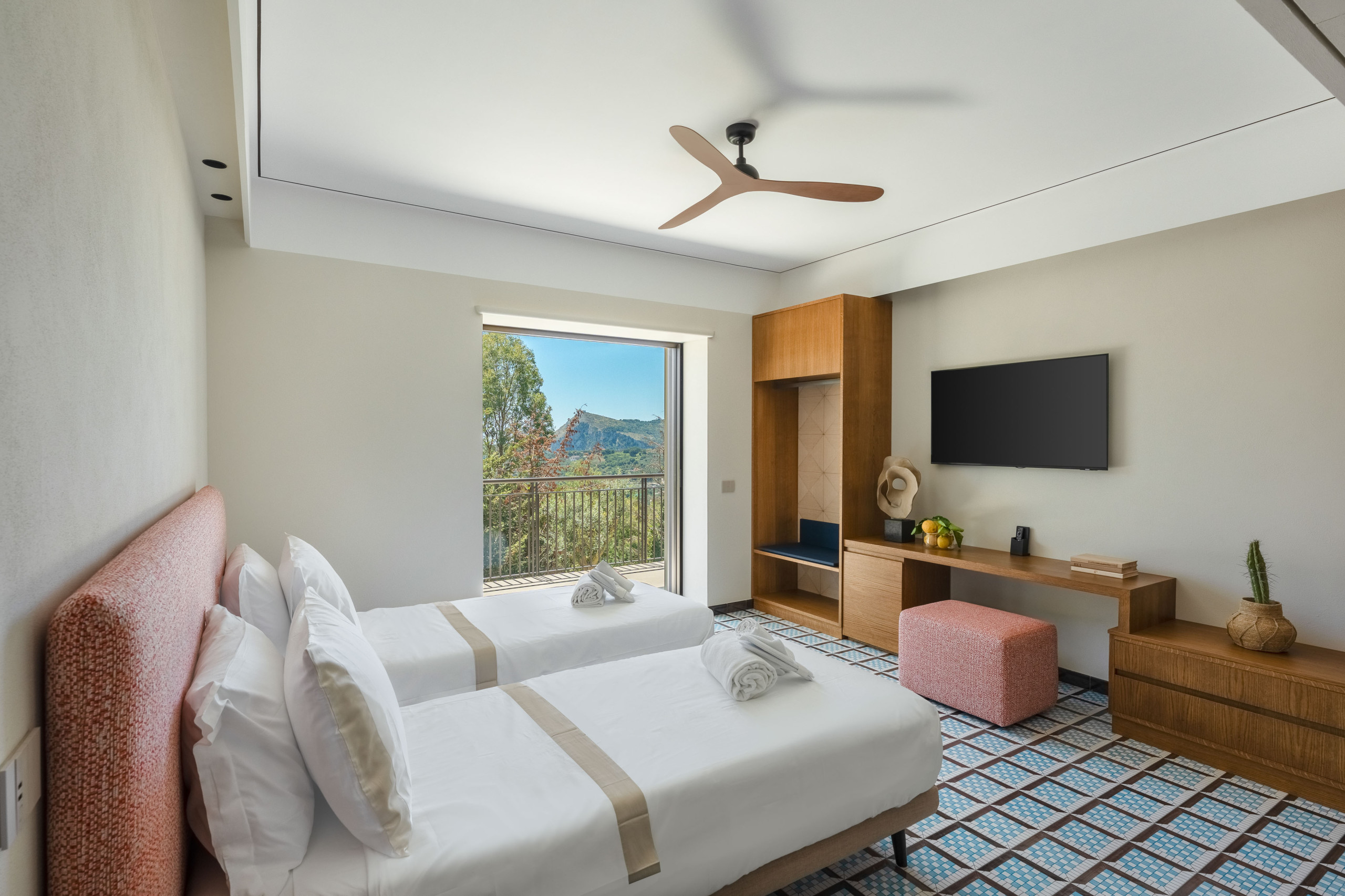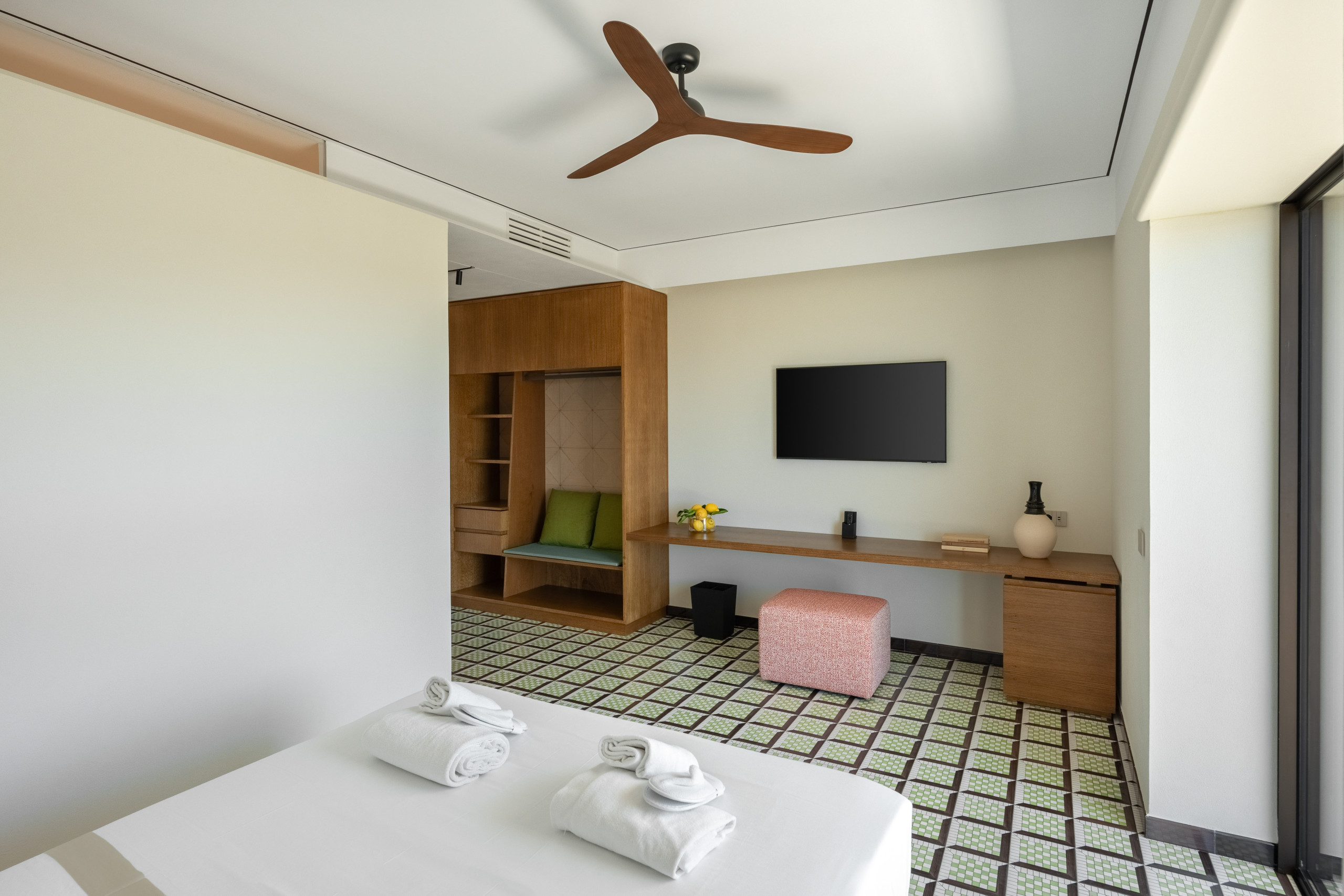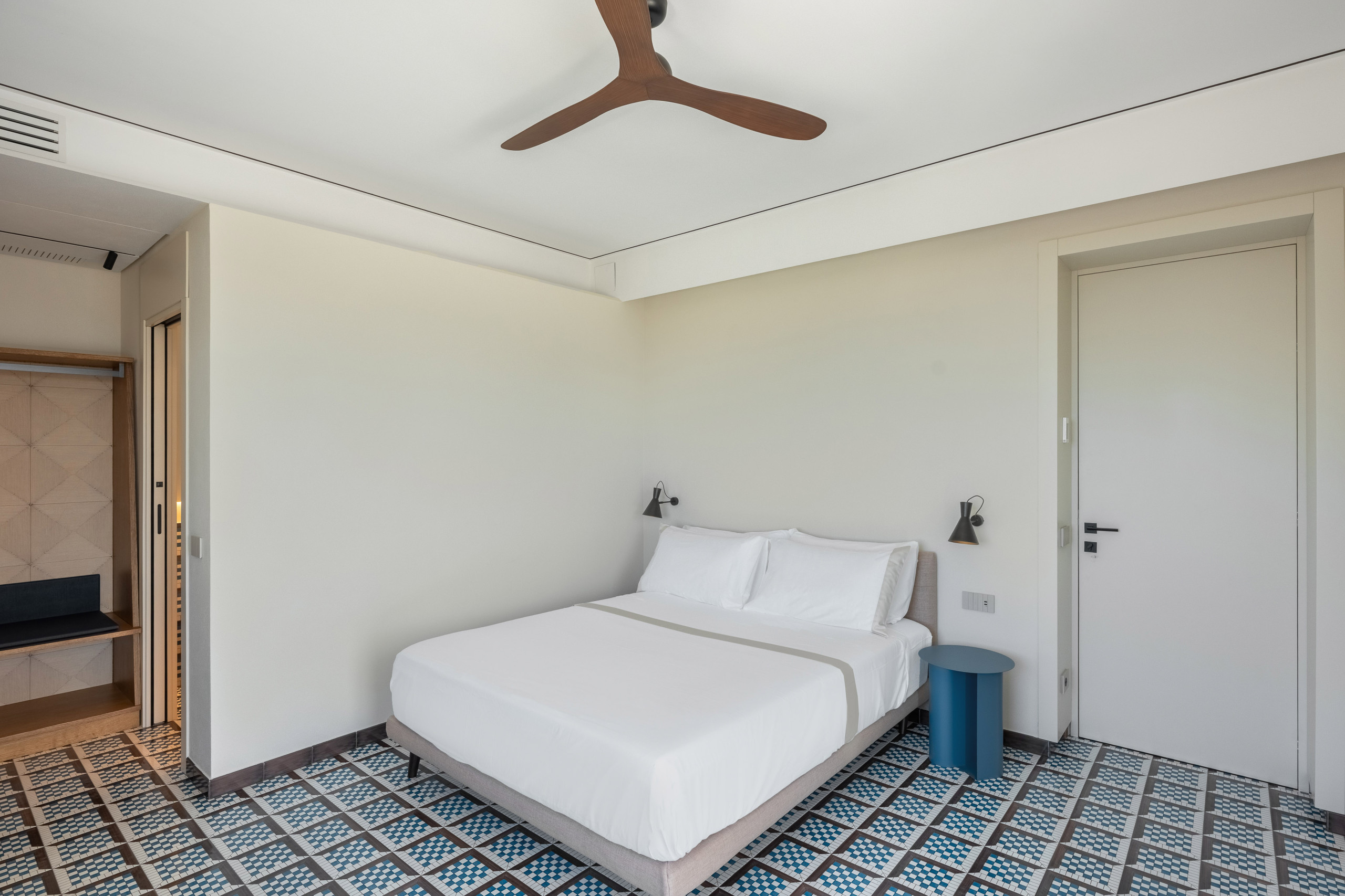 La segunda planta es idéntica a la primera, por lo que tenemos tres habitaciones divididas de la misma manera, con la única variación del color del hermoso pavimento de baldosas de Vietri.