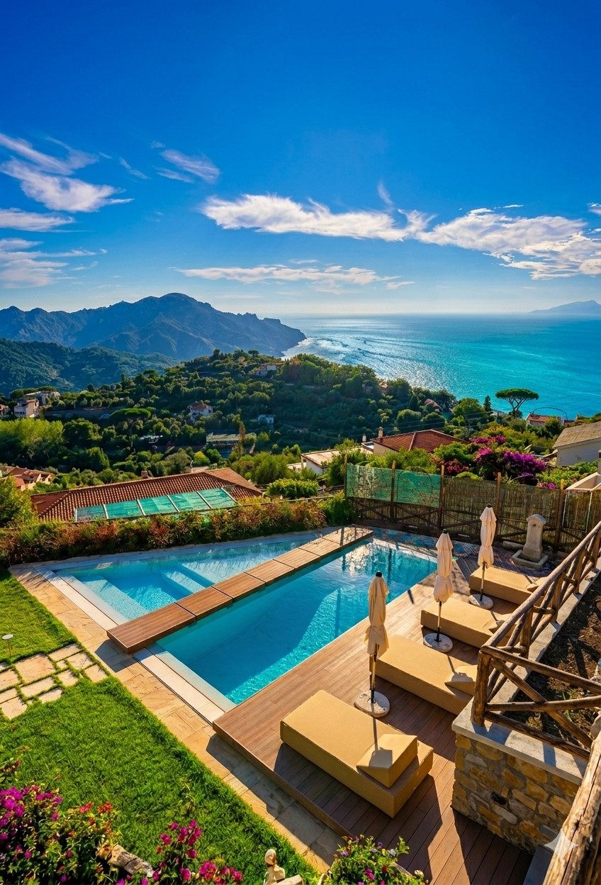Inmersa en los espléndidos paisajes de Massa Lubrense, a pocos kilómetros de Sorrento y de las principales atracciones como las famosas Positano, Amalfi y toda la pintoresca Costa Amalfitana, esta maravillosa propiedad rodeada de un parque único es el lugar ideal para quien desea pasar unas vacaciones en completa privacidad sin renunciar a las comodidades y servicios de un hotel de cinco estrellas. Estos incluyen una fantástica piscina panorámica con hidromasaje, una pequeña área de fitness, un ascensor y un aparcamiento privado con estación de carga eléctrica. En el interior, seréis acogidos por la calidez de una propiedad de estilo moderno finamente amueblada con muebles realizados íntegramente a mano por maestros carpinteros de nuestra región, con acabados y materiales de alta calidad. ¡Nada se ha dejado al azar! Asomándoos desde las terrazas de Villa Giorgio, tendréis la sensación de poder tocar Capri con un dedo. ¡Y no olvidemos Ischia… basta mirar un poco más allá para quedar embriagados por una vista que no tiene igual en el mundo!