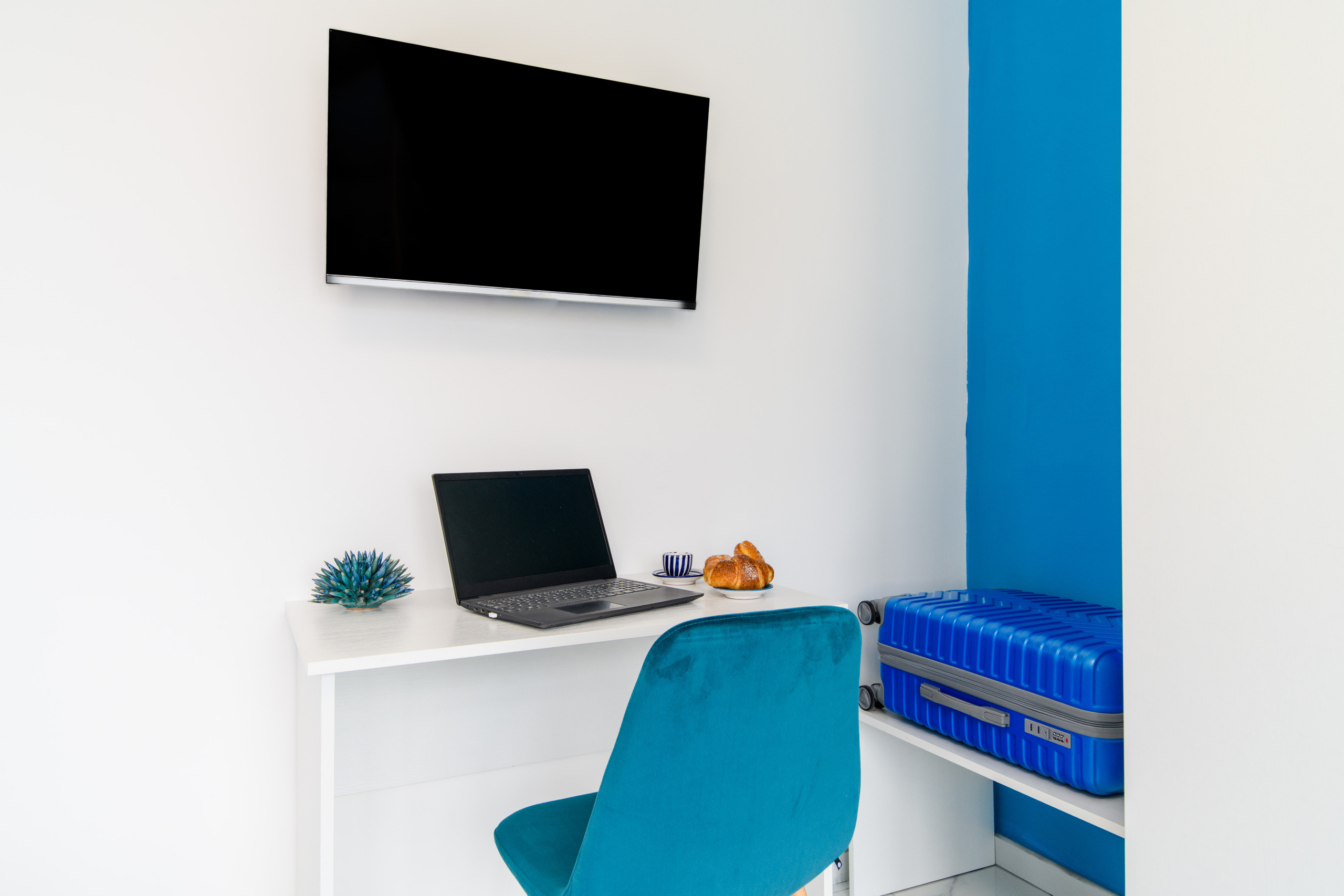 Le logement est composé d'une chambre matrimoniale confortable et d'un espace de vie spacieux qui accueille deux lits simples, offrant une solution de repos plus confortable qu'un canapé-lit classique. La kitchenette est moderne et entièrement équipée avec une plaque à induction, un four micro-ondes et une machine à café à dosettes. Un pratique table de collation complète l'espace cuisine, parfaite pour des petits-déjeuners rapides ou des déjeuners informels.
