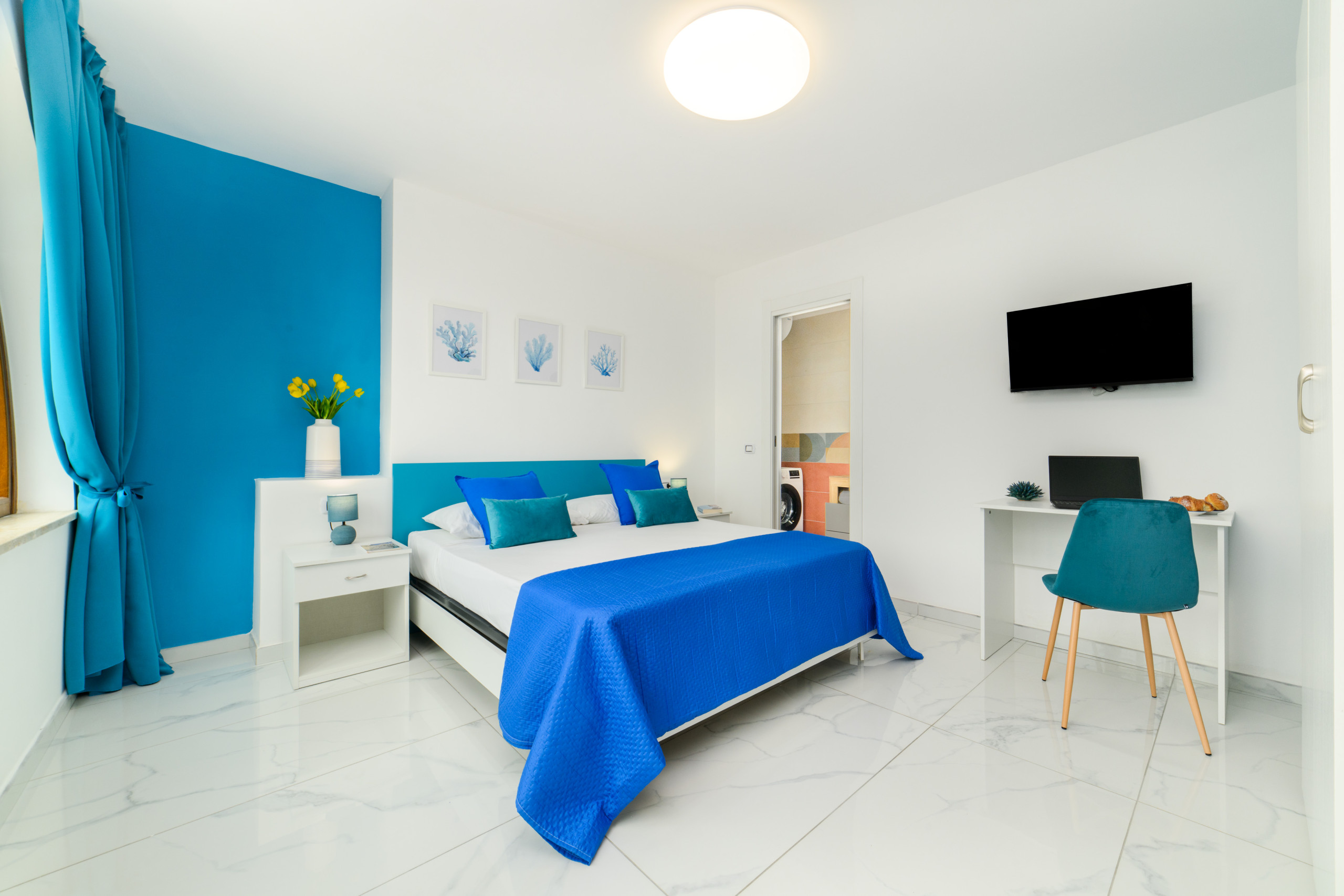 À disposition des invités, tous les conforts modernes : connexion Wi-Fi gratuite, TV, et une salle de bain fonctionnelle dotée d'une cabine de douche et d'un lave-linge. À l'extérieur, vous pourrez profiter d'un moment de détente dans le patio partagé, meublé avec un set bistrot commun idéal pour un café en plein air.