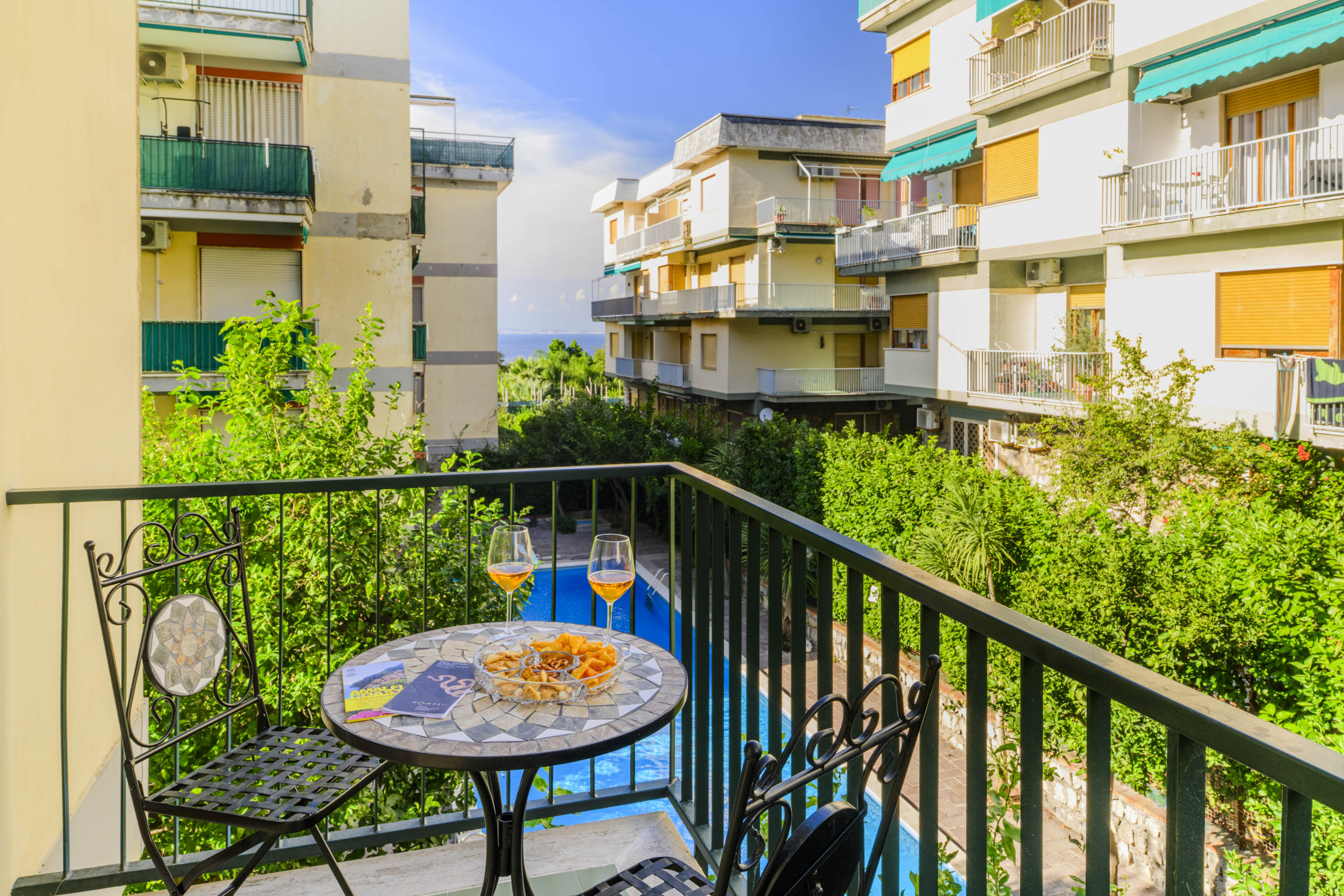 • Grand balcon avec vue sur la piscine, parfait pour des moments de détente en plein air ;