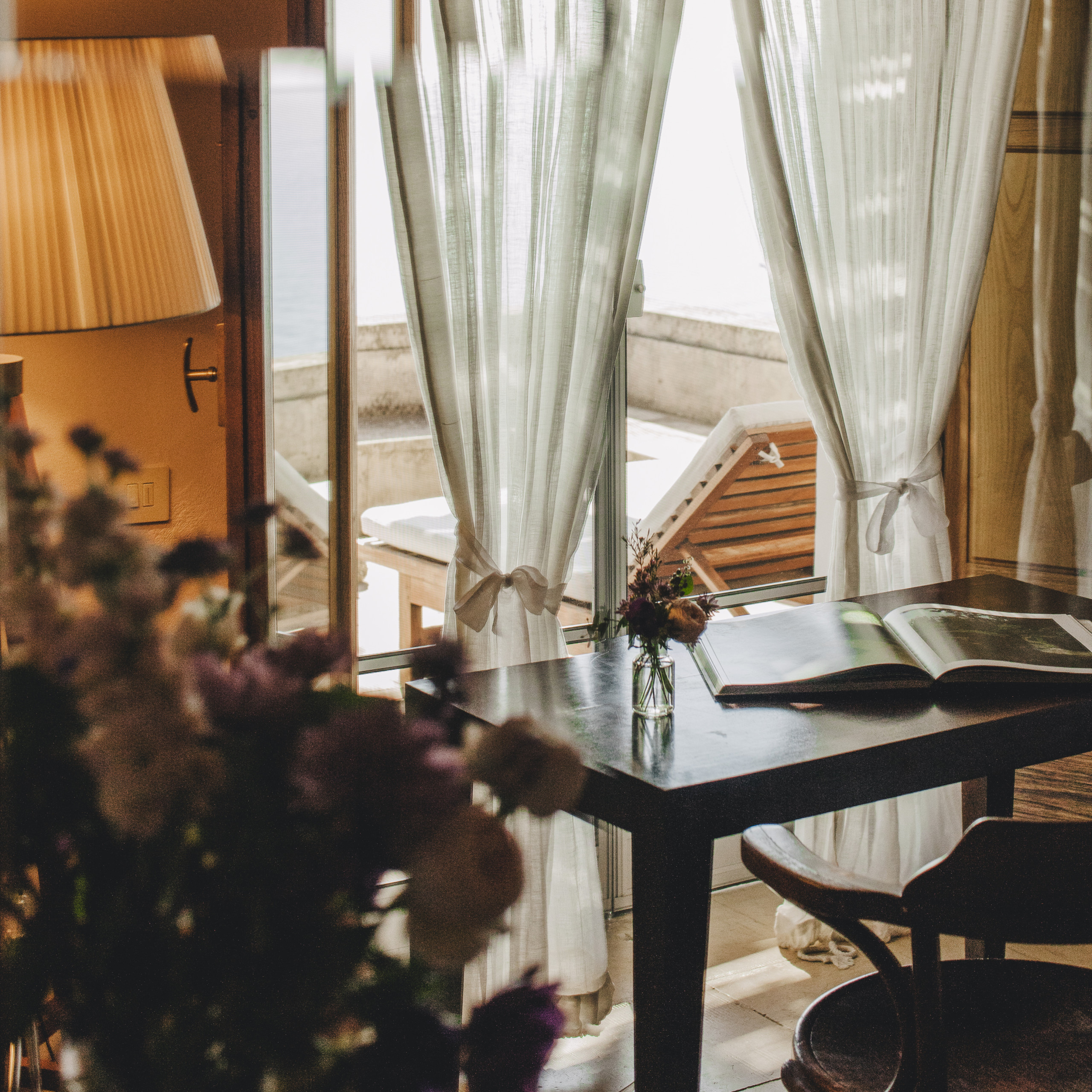 Bien que ce soit la seule chambre où il n'a pas été possible de réaliser une salle de bain privée interne, elle dispose néanmoins d'une salle de bain privée à deux pas de l'entrée et c'est l'une de nos chambres préférées de la maison. Il suffit de se lever du lit et de sortir directement sur la terrasse pour se réveiller et profiter de la magnifique vue sur les montagnes, la mer et le jardin en contrebas. La terrasse est meublée d'un lit double, d'une grande table et de chaises.