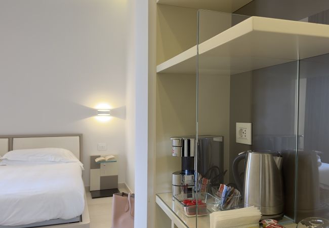 Le B&B Surreo est situé dans le centre historique de Sorrente, dans un bâtiment datant de 1700. Le design de la structure allie l'historique et le moderne. Les portes d'entrée du bâtiment et de l'appartement sont toutes deux automatiques, tout comme le système d'ouverture du coffre-fort dans lequel se trouvent les cartes pour accéder aux chambres et allumer la lumière. Dans l'entrée se trouve un totem avec écran tactile, utile pour obtenir des nouvelles et des explications sur les appartements, les sites d'intérêt ou les services publics, tous deux à usage personnel. Les noms de nos chambres s'inspirent de la mythologie et disposent de tout le confort pour rendre votre séjour inoubliable.