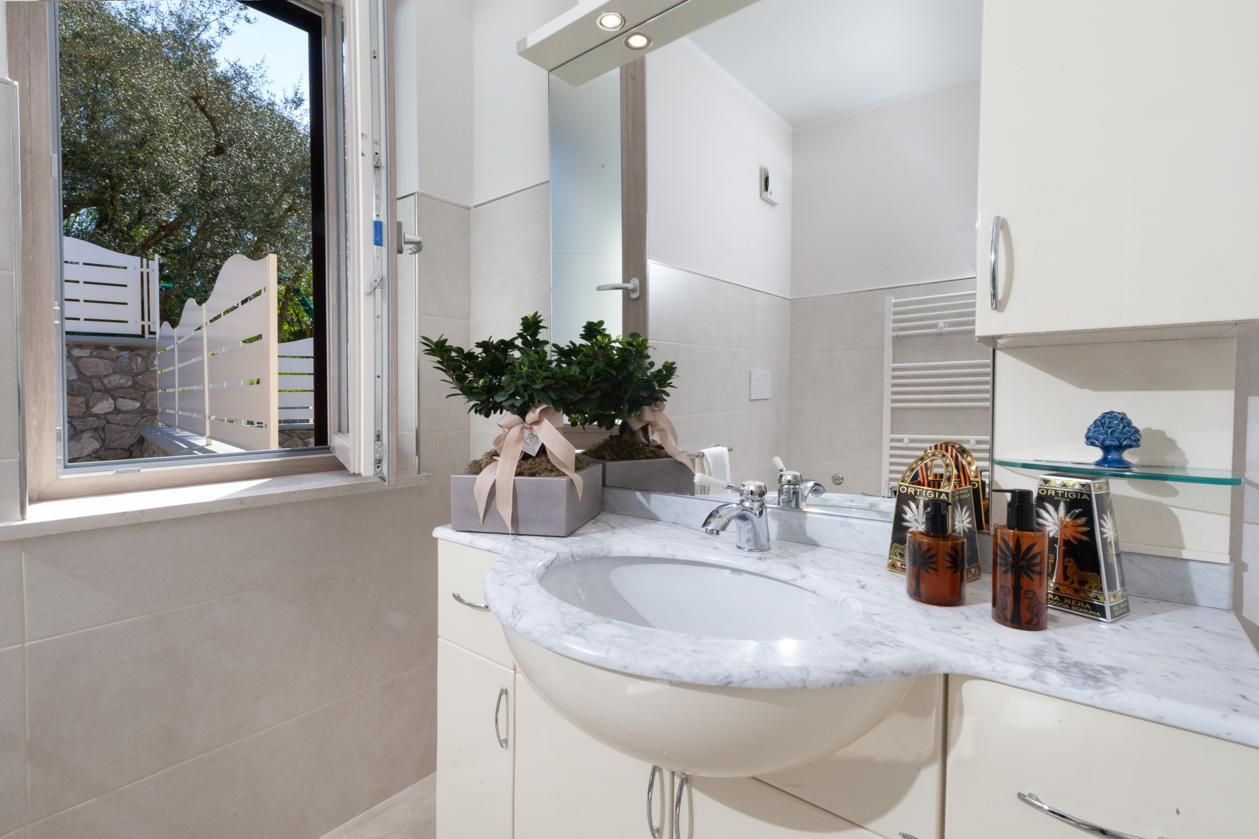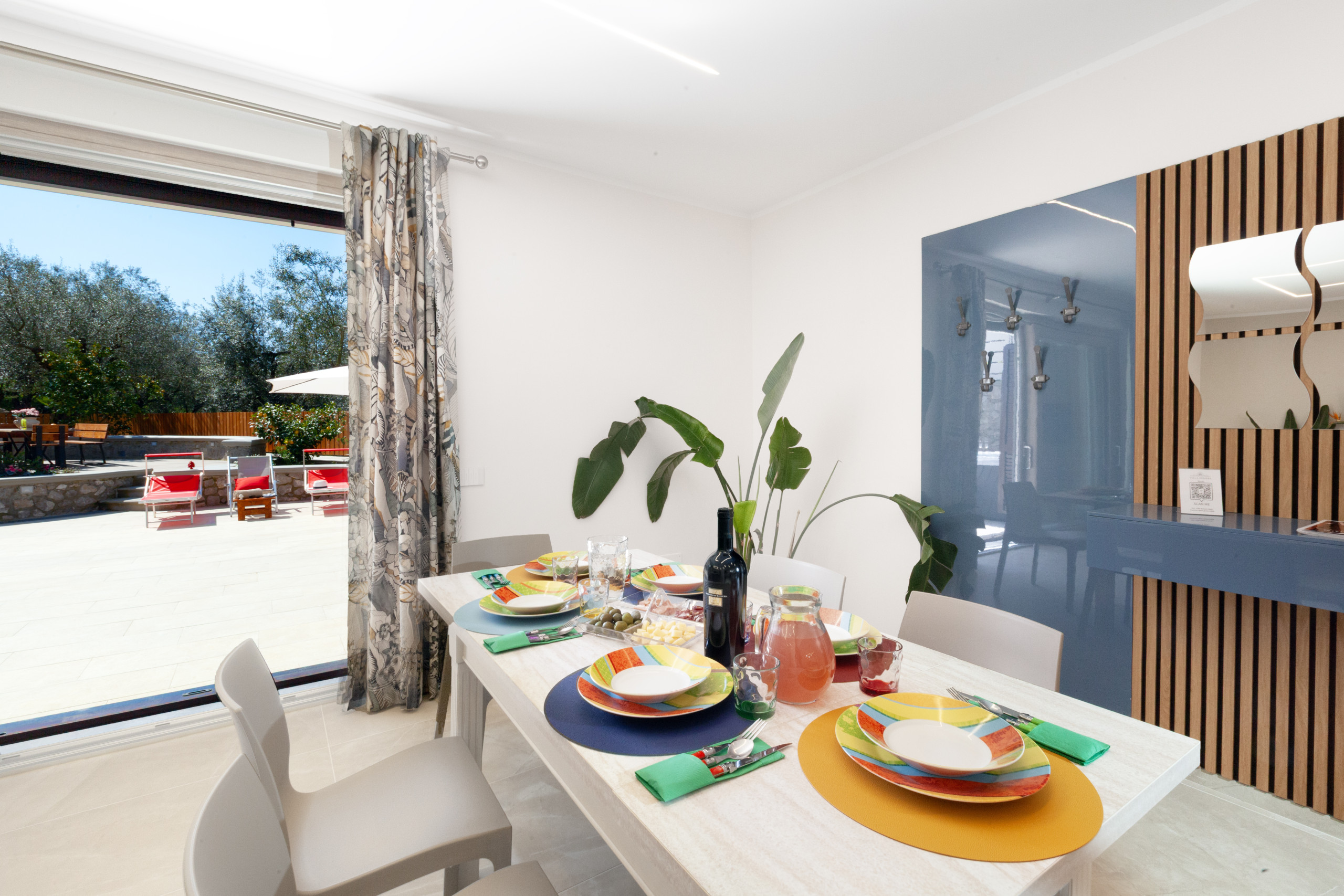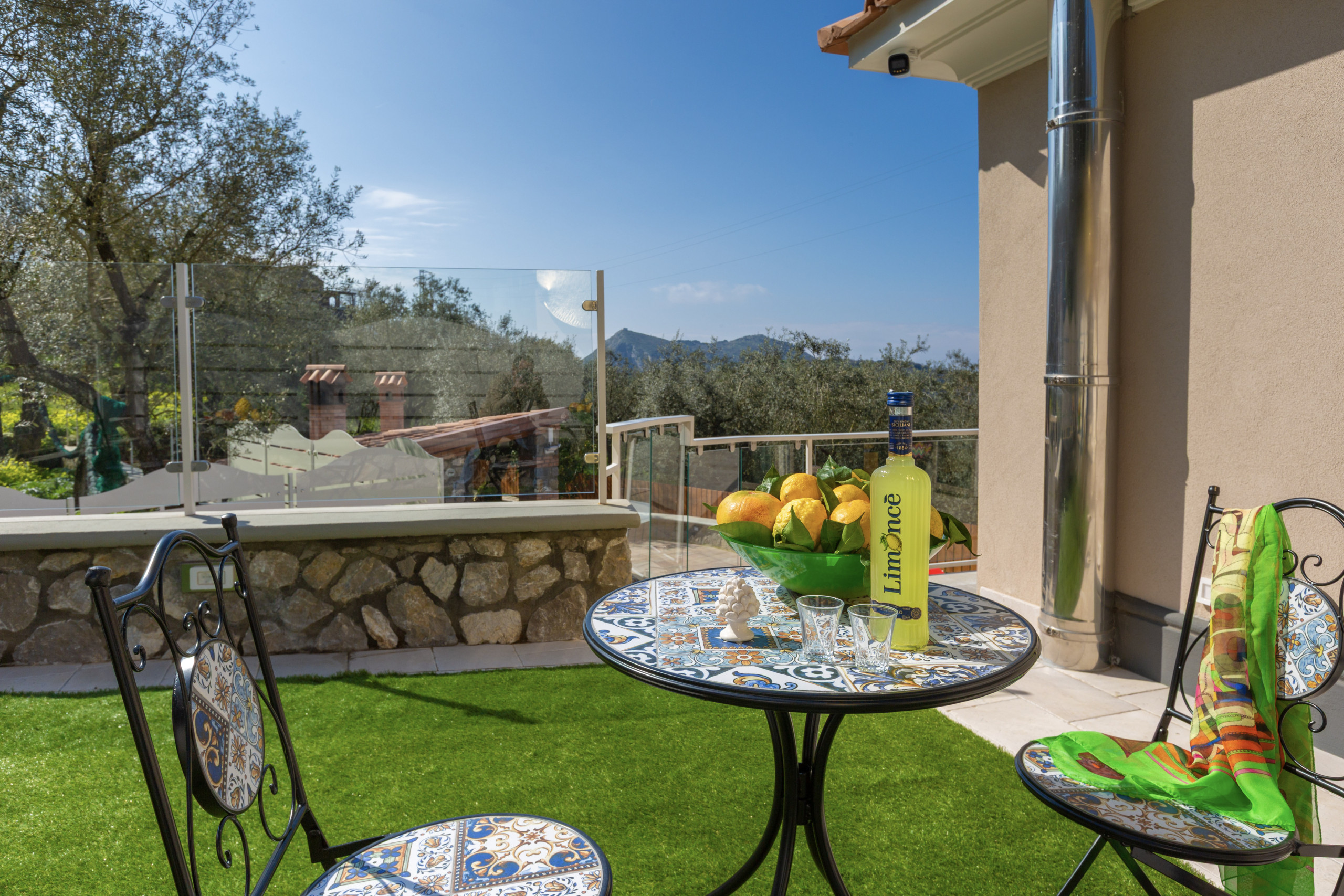 Immergée dans la verdure et complètement clôturée, Villa Elios offre intimité, tranquillité et une sensation de paix rare. À l'extérieur, entre le silence et la lumière de la côte, s'ouvre également une agréable vue partielle sur Capri, un détail qui rend chaque moment encore plus suggestif.
