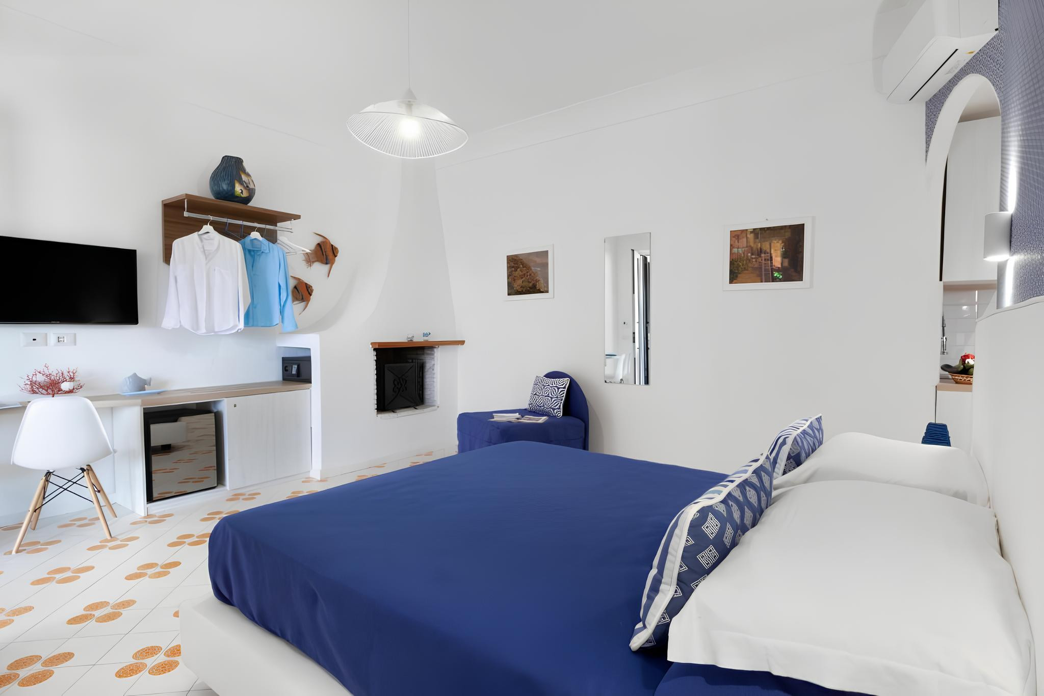 -La seconda camera matrimoniale dispone di letto king size, comodini, cassettiera e SMART TV a schermo piatto. Bagno privato attiguo con doccia a pavimento di 1,50 e completa di tutti gli altri servizi igienici, asciugacapelli a muro.