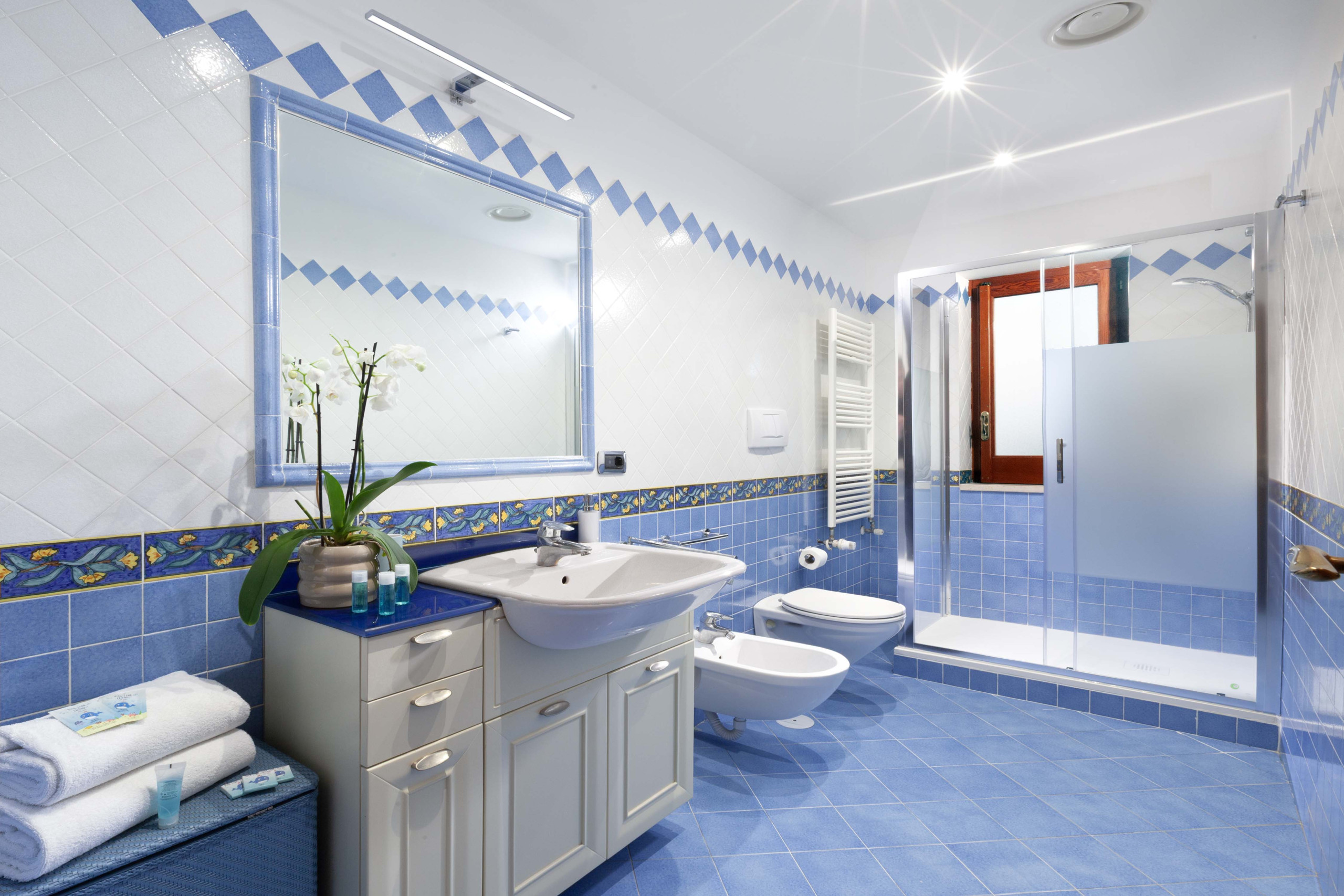 Sono presenti due bagni con cromoterapia, il primo dotato di vasca idromassaggio Jacuzzi, il secondo di un box doccia ultramoderno.
