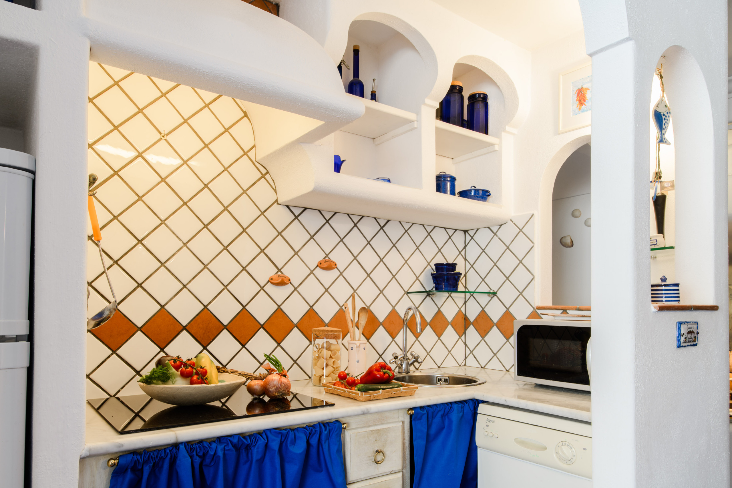 Si compone di lavabo a doppia vasca, piano cottura ad induzione, frigo con congelatore, microonde e forno. In loco troverete anche macchina del caffé con cialde e macchina del caffé americana. In soggiorno è presente anche un bagno di servizio completo di doccia, lavatrice, lavabo, wc e bidet. Una porta divide il soggiorno dalla zona notte, che dispone anche di un accesso dalla terrazza.