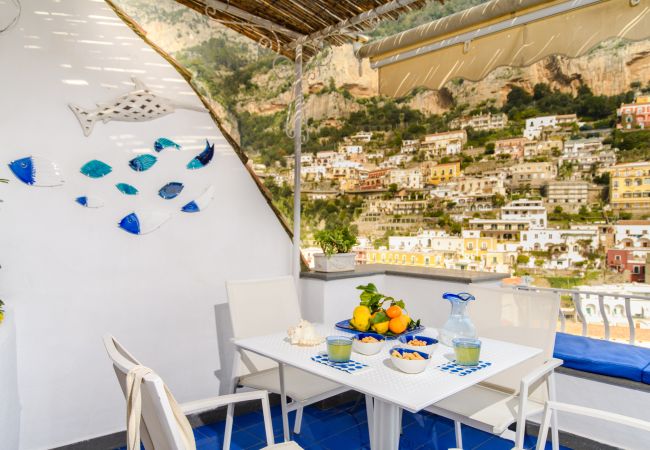 L’appartamento dispone di un’ampia terrazza esterna con vista mare sulla città di Positano e sull'intera costiera fino a scorgere i faraglioni di Capri!