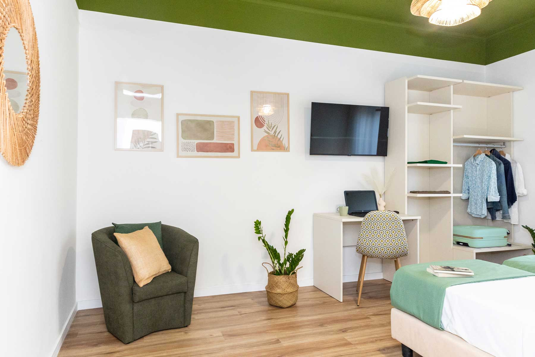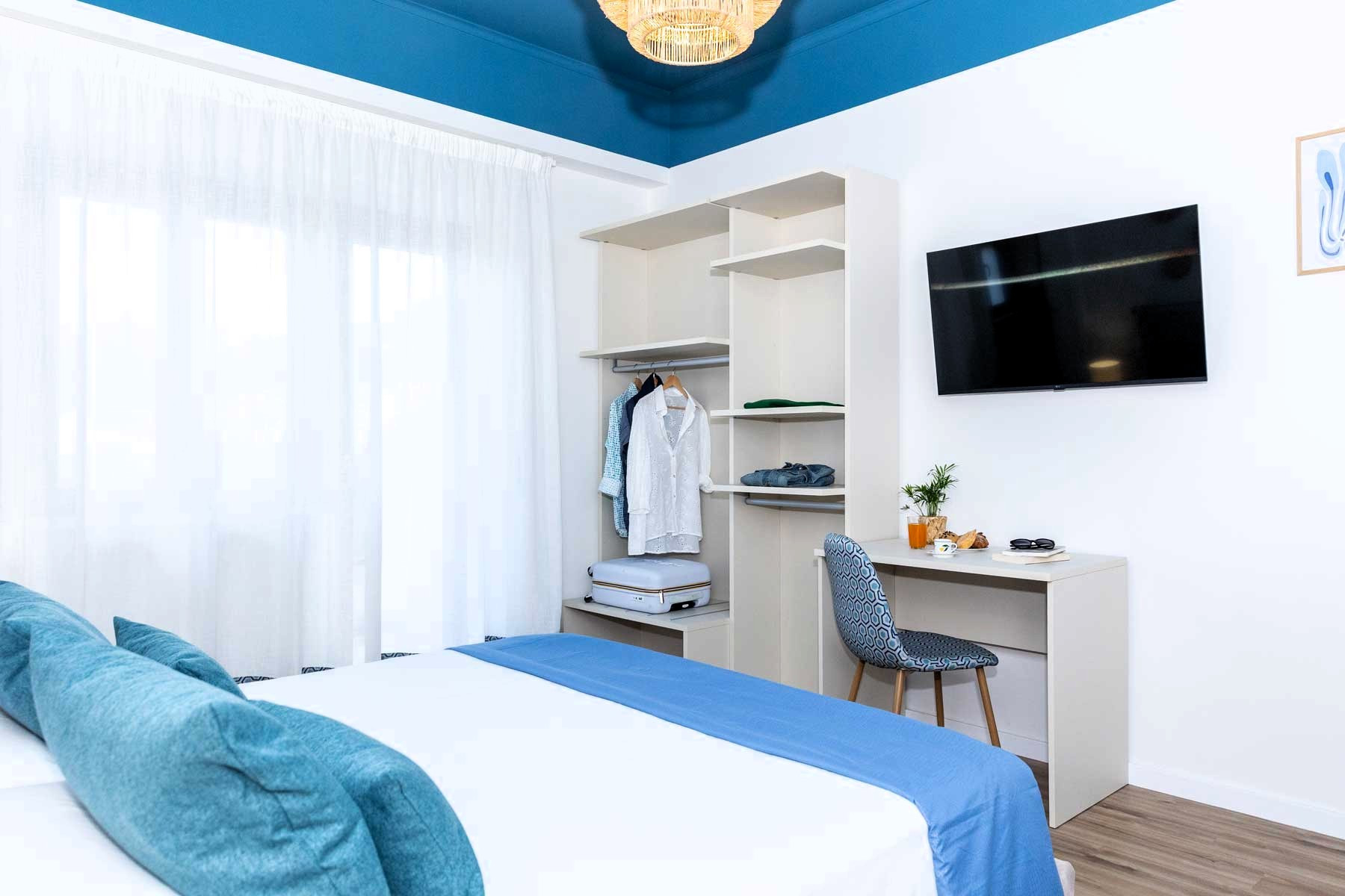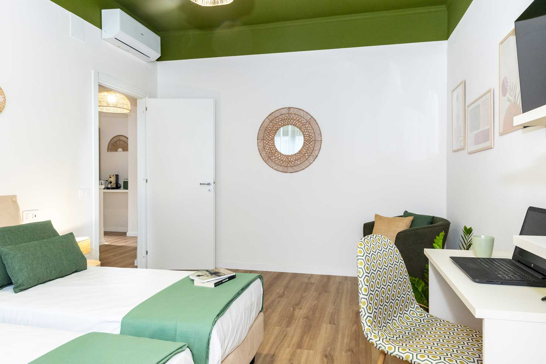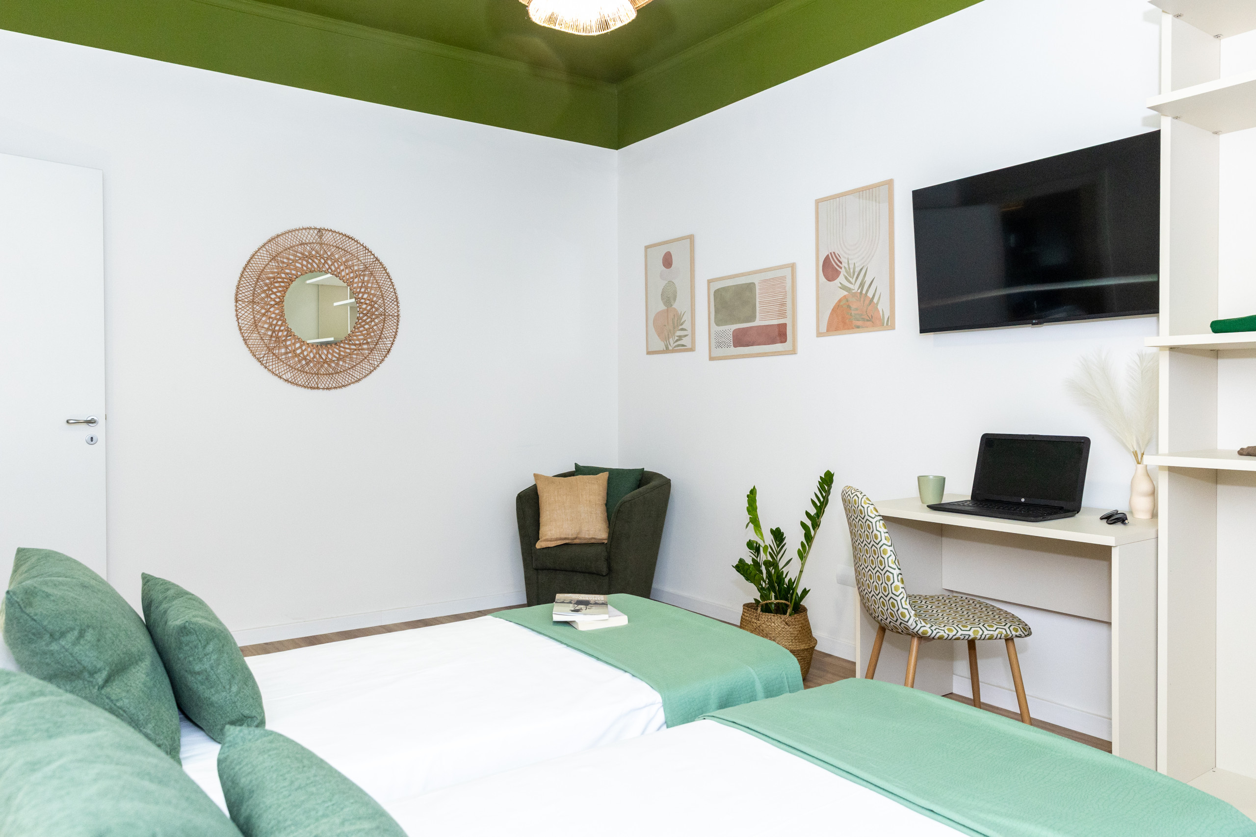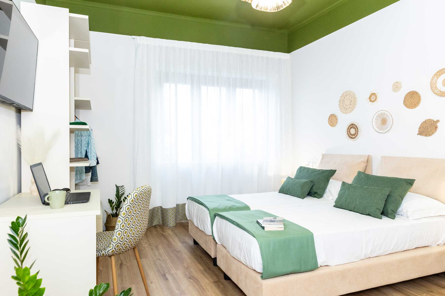 Second double room, with two single beds, 43-inch TV, comfortable and welcoming, with a large and bright window, wardrobe and desk.