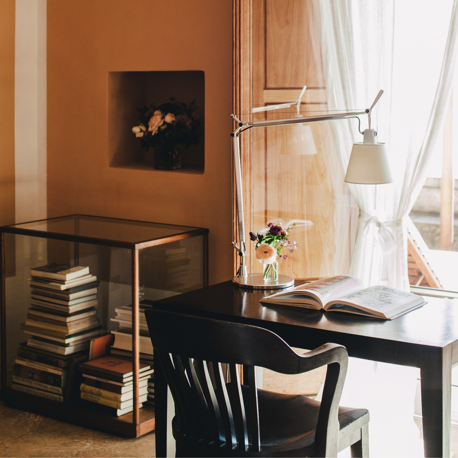 All rooms offer a spectacular view of the garden and the splendid Amalfi Coast, as well as a telephone for internal calls within the property, flat-screen TV with Sky channels, air conditioning, minibar, hairdryer and free Wi-Fi connection throughout the property. At the centre of each room in the main villa is a cubic glass bookcase containing approximately 130 volumes. This private library, present in each of the six rooms, is dedicated to a different area of interest: art, architecture, nature, history, philosophy and psychology.
