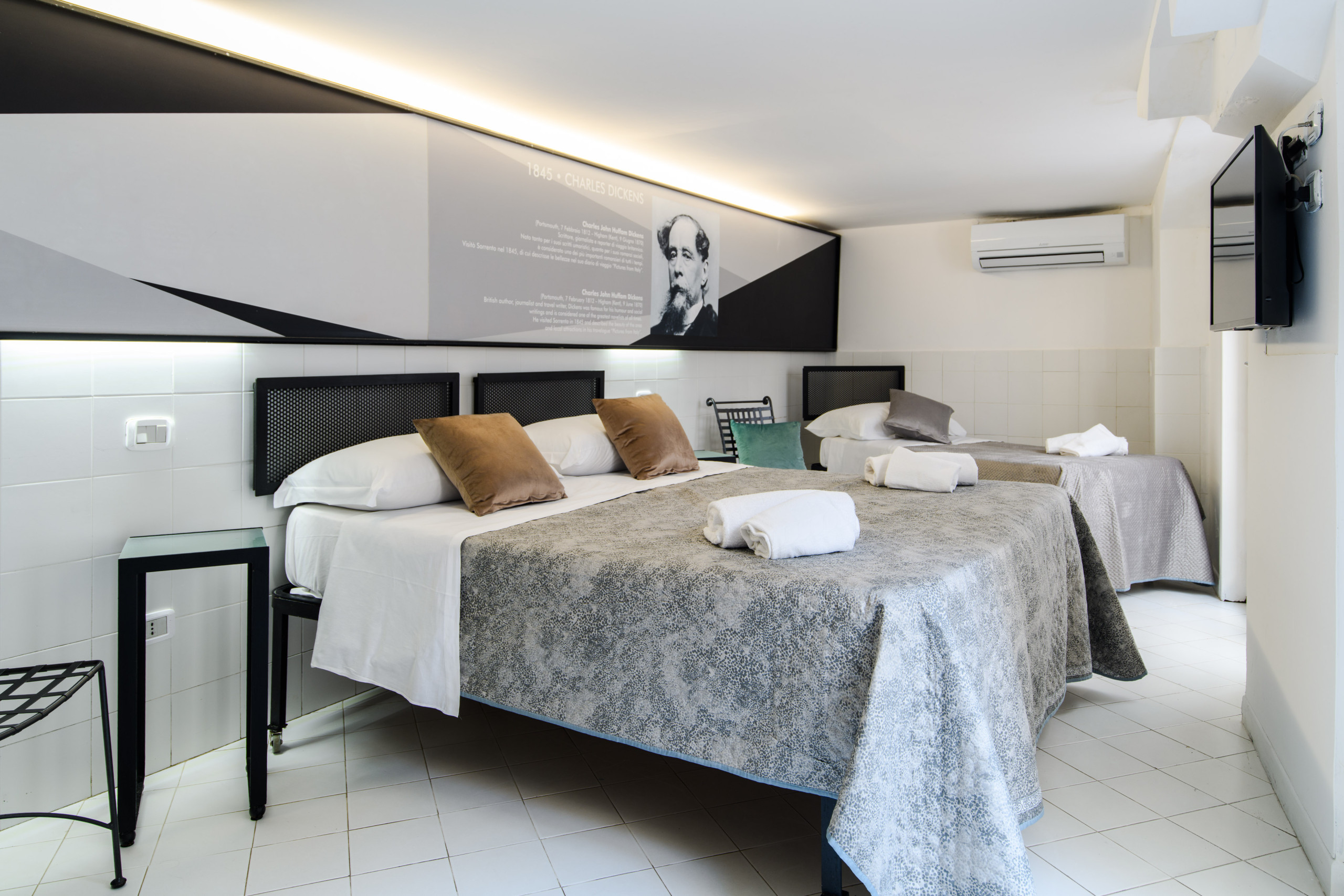 Located just 500 metres from Marina Grande beach in Sorrento, the property welcomes its guests in a context of rare tranquillity.